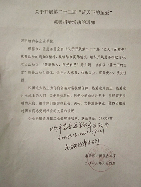 眾幸股份的下屬公司上海尊島防護科技有限公司響應四團鎮(zhèn)人民政府的號召,積極參與公益事業(yè),為第二十二屆“藍天下的至愛”慈善活動添磚加瓦,貢獻自己的綿薄之力。