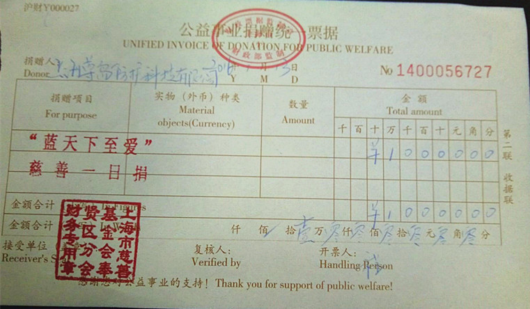 公司為“藍天下的至愛”慈善募捐活動添磚加瓦